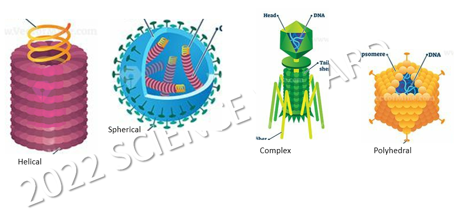 - Helical viruses- They are made up of a single type of protein which is stacked around a central axis to form a helical-in-shape structure.