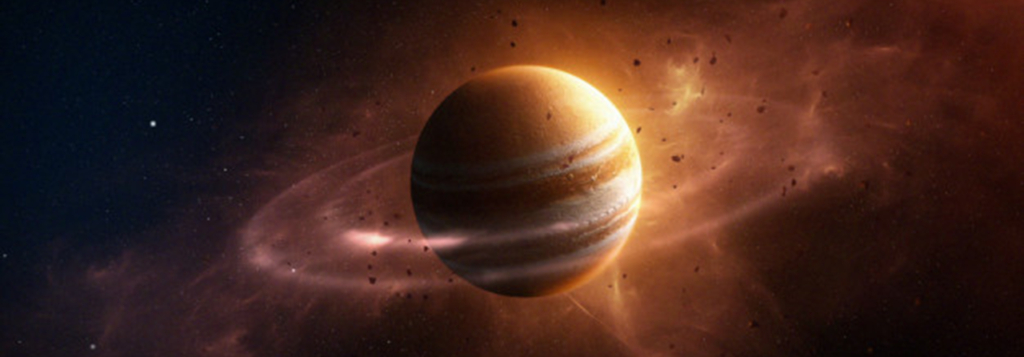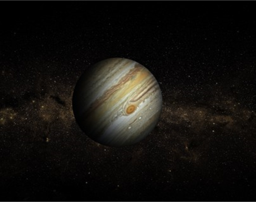 Jupiter is the 5th planet from our Sun . The size of Jupiter is 61.42 billion sq. km. Also , the most massive of all of the planets . To take it’s massive size into comparison , Jupiter is larger than all the other planets’ surface area combined . Jupiter’s name comes from the king of the Roman gods . It takes 0.41 days for 1 rotation and 11.86 years for one revolution .