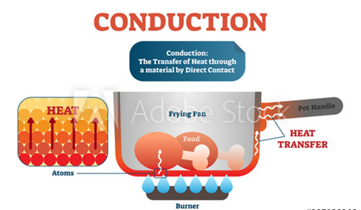 Conduction is the mode of transmission of heat from one object to another through direct contact . It only takes place when the objects are in contact with each other. It is the slowest mode of heat transfer .