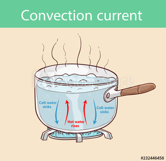 Convection is the mode of transfer of heat due to the movement of molecules . Hot air upsurges as it is lighter and cold air descents as it is heavier .